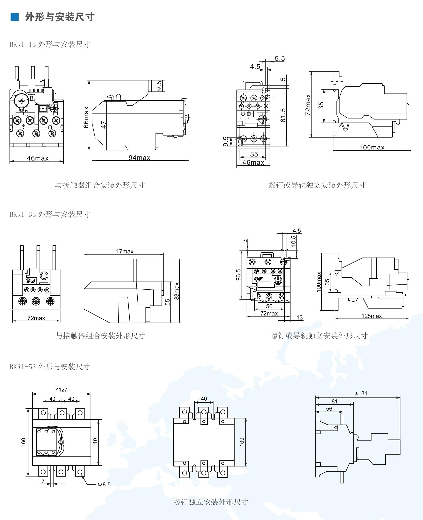 BKR1系列熱過載繼電器,在交流50Hz(60Hz)、額定電壓至690V、電流0.1A至630A的電路中,作三相交流電動機的過載和斷相保護之用。熱過載繼電器具有溫度補償、動作指示、自動和手動復位、停止等功能,性能穩(wěn)定可靠。產品符合IEC 60947-4、GB/T 14048.4、GB/T 14048.5標準。