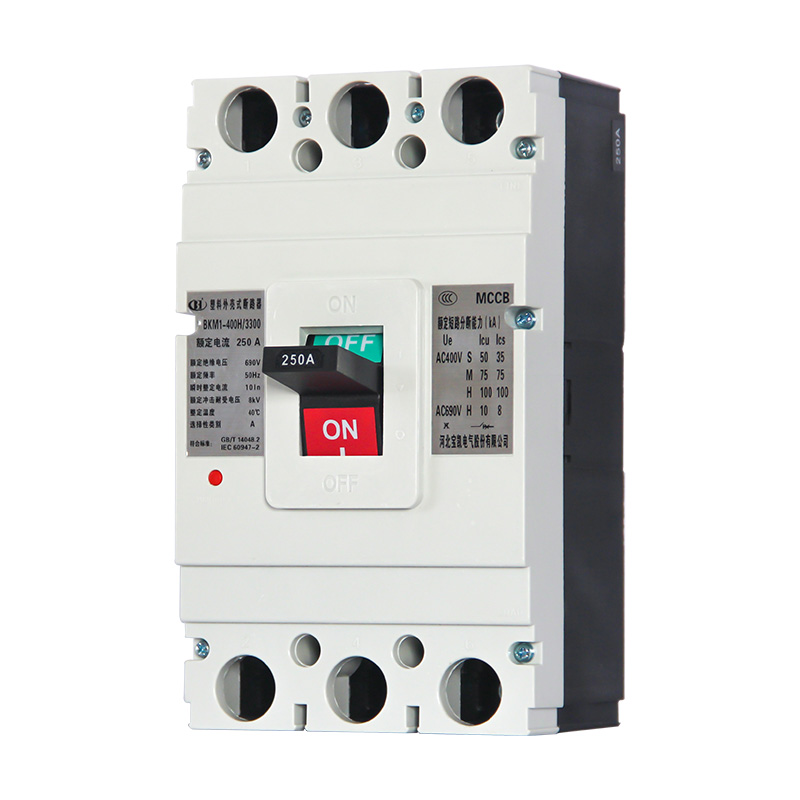 BKM1系列塑料外殼式斷路器適用于交流50Hz,額定絕緣電壓690V,額定工作電壓至400V,額定電流至800A的配電網(wǎng)絡(luò)中,用來(lái)分配電能和保護(hù)線路免受過(guò)載、短路、欠電壓等故障的損壞。額定電流630A及以下斷路器亦可作電動(dòng)機(jī)不頻繁起動(dòng)用。本系列斷路器具有隔離功能。本系列斷路器可垂直安裝(即豎裝),亦可水平安裝(即橫裝)。本系列斷路器執(zhí)行標(biāo)準(zhǔn):IEC 60947-1及GB/T 14048.1 《低壓開(kāi)關(guān)設(shè)備和控制設(shè)備 第1部分:總則》IEC 60947-2及GB/T 14048.2 《低壓開(kāi)關(guān)設(shè)備和控制設(shè)備 第2部分:斷路器》IEC 60947-4及GB/T 14048.4 《低壓開(kāi)關(guān)設(shè)備和控制設(shè)備 第4-1部分:接觸器和電動(dòng)機(jī)起動(dòng)器 機(jī)電式接觸器和電動(dòng)機(jī)起動(dòng)器(含電動(dòng)機(jī)保護(hù)器)》